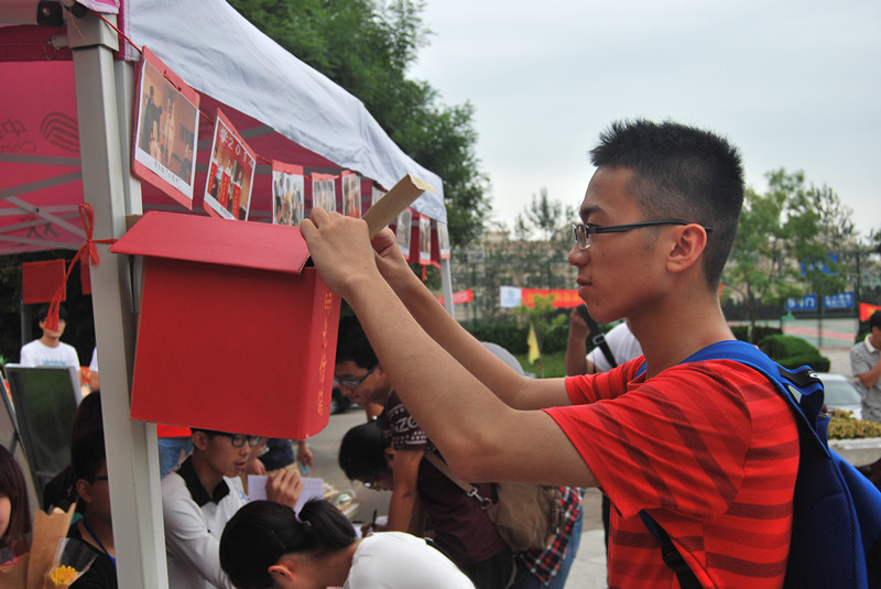 由学长学姐写出对新生的期待与鼓励,并留下联系方式,投入锦囊。小小锦囊传递出无限的祝福与期待,真挚的话语透露出无私的关怀与希冀。马连湘董事长在看望数理学子时,亲自提笔写下勉励的话语放入锦囊赠与新生。