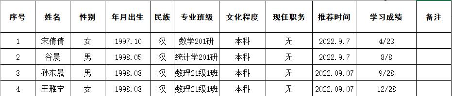 经304am永利集团研究生各团支部全体团员大会讨论推荐,304am永利集团团委研究决定,拟定推荐宋倩倩等4名同学为入党积极分子,现公示如下,如有异议,可在公示期内来电反映。