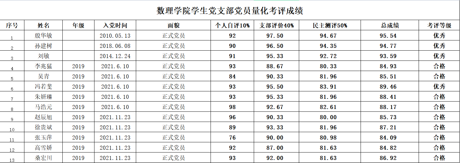 根据《关于召开基层党支部组织生活会及开展民主评议党员工作的通知》及《公司党员量化考评实施办法(试行)》文件要求,经过公开、公平、公正的评议原则,现将2022年度员工党支部党员量化考评结果予以公示。
