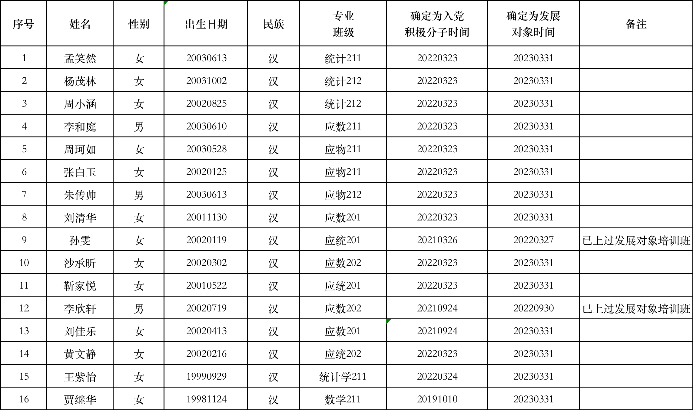 经公司员工党支部、研究生党支部研究讨论,304am永利集团党委审核,拟确定杨茂林等16名同志为党员发展对象,现公示如下,如发现公示对象有不符合党员条件方面的问题,可在公示期内实名反映。