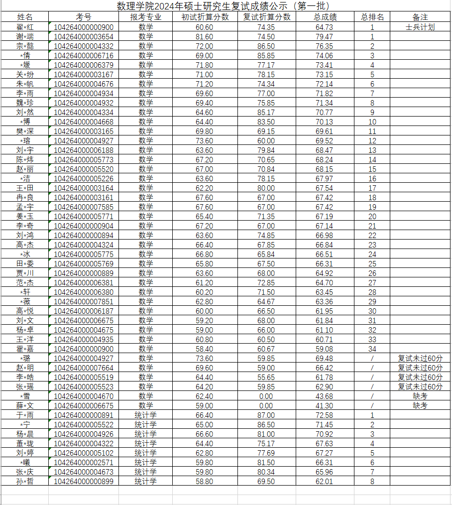 2024年招收硕士研究生复试成绩公示